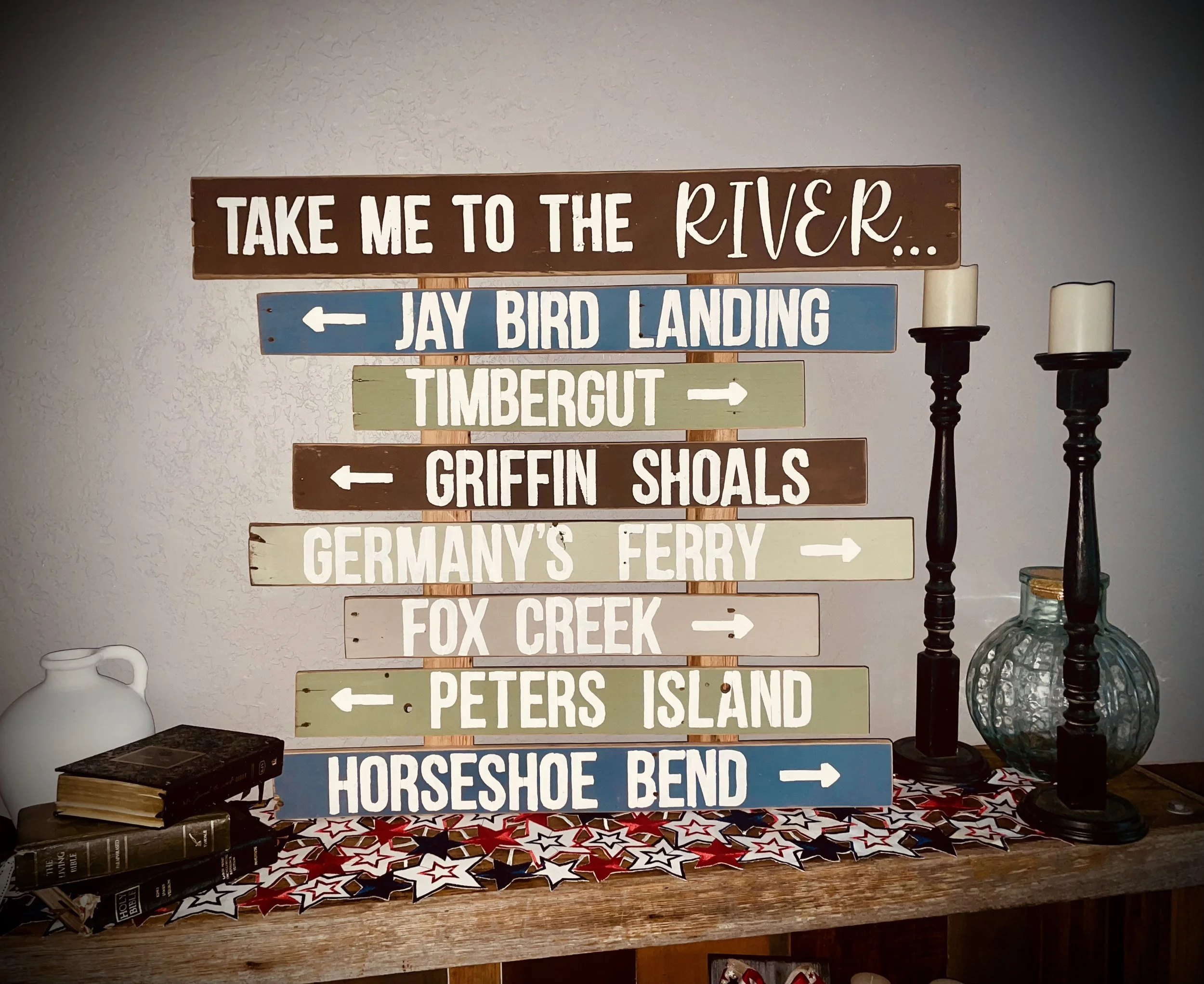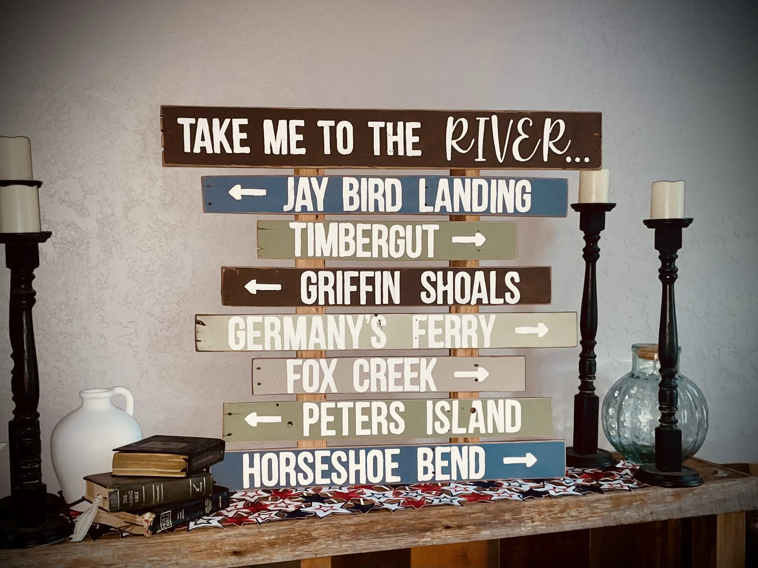 Most custom pieces are created using salvaged wood personally sourced from around east central Alabama — cleaned, sanded, and thoughtfully prepped by hand before any paint touches the surface. Because of this, each item carries its own character, texture, and imperfections that make it beautifully unique.